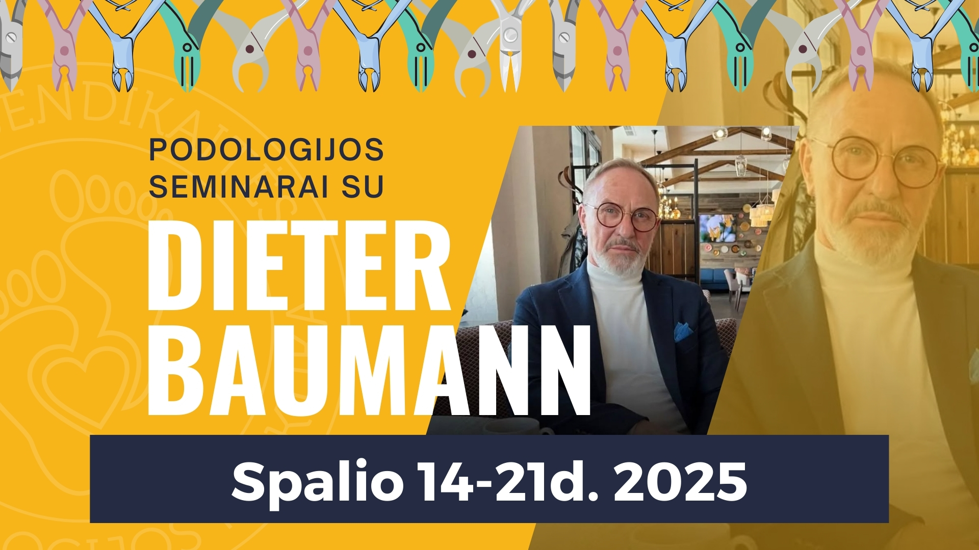 Seminarai yra kuruojami mūsų svečio Dieterio Baumanno – vieno iš labiausiai pasaulyje pripažintų podologų iš Vokietijos. Jo sukurta mokymų metodika apima ne tik teorinius, bet ir praktinius aspektus. Jis taip pat yra daugelio knygų ir straipsnių apie pėdų sveikatą ir nagų ligas autorius.